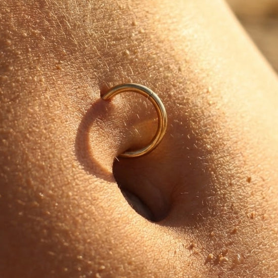 Le piercing nombril anneau doré offre une touche d'élégance et de glamour. Ce piercing allie style et durabilité. Son design classique en fait un accessoire polyvalent, parfait pour compléter une variété de tenues avec une touche de sophistication.