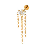 Le piercing hélix annabel est un bijou d'oreille d'exception, arborant une forme d'arche élégante avec une chaîne délicate et une gemme suspendue en titane et zircon pour une esthétique architecturale.